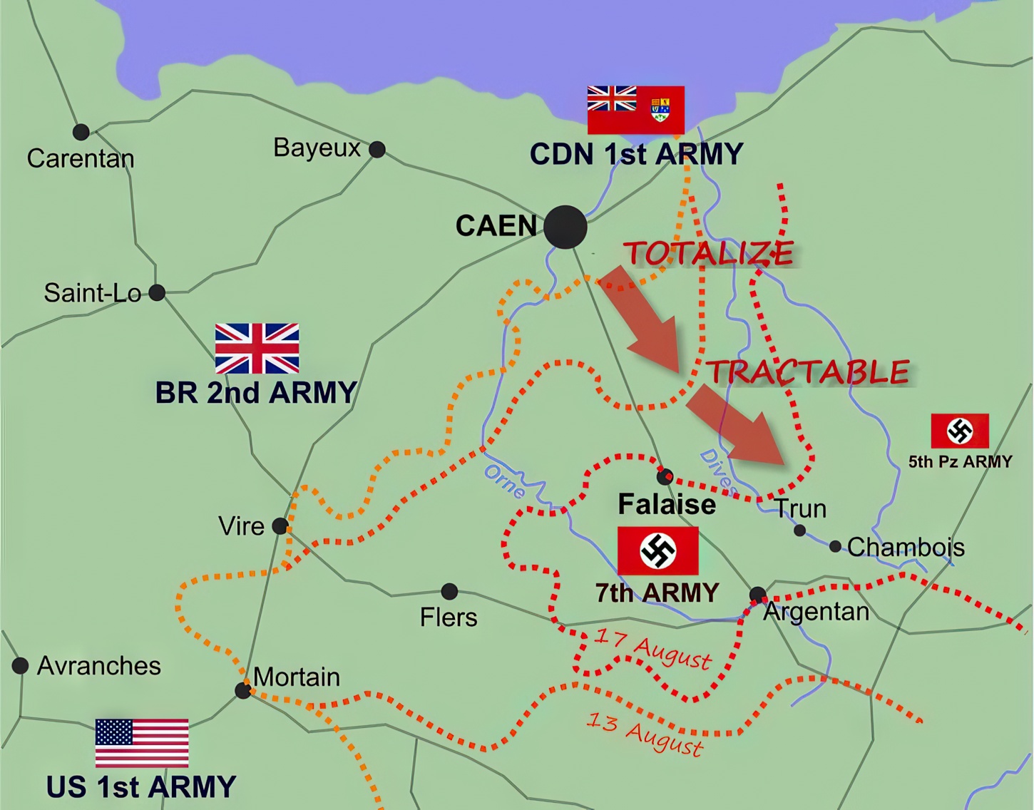 Le 5 août en soirée, les 72 Kangourous étaient prêts. Quatre véhicules de plus furent terminés avant midi le 6, chacun capable de transporter de 10 à 15 fantassins avec leurs armes et tout leur équipement. Le 7 août, pour la première fois de l’histoire du Canada, l’infanterie put avancer avec les chars comme protection contre le feu des armes légères et les éclats d’obus. L’utilisation des transporteurs de troupes Kangourous Priest connut un succès immédiat, tout comme la phase Un de Totalize.
